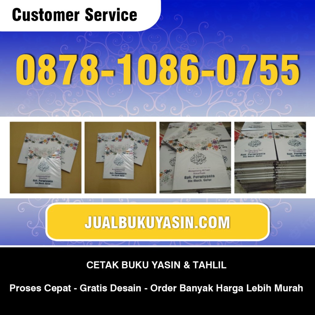 WA 0878-1086-0755 Cetak Yasin Eksklusif”0878-1086-0755 (WA) Cetak Yasin Eksklusif, Jual Buku Yasin Murah Jakarta, Harga Buku Yasin di Yogyakarta, Cetak Yasin Eksklusif, Cetak Buku Yasin di Tangerang, Cetak Buku Yasin di Surabaya, Yasin Kecil, Cetak Yasin Murah Bogor, Buku Yasin dan Tahlil Lengkap, Buku Yasin Eksklusifالسَّلاَمُ عَلَيْكُمْ وَرَحْمَةُ اللهِ وَبَرَكَاتُهُSelamat Datang di Pusat Cetak Buku Yasin dan Tahlil Berkualitas dan TermurahBuku Surat Yasin biasanya dipesan untuk tahlilan dan souvenir memperingati 40, 100, 1000 hari kematian saudara atau kerabat. Disini kami menyediakan Buku Yasin Murah yang bagus, kuat, eksklusif dan menyediakan berbagai desain sesuai pesanan dan kebutuhan Anda dengan harga yang terjangkau.Hubungi Kami untuk memperoleh harga dan pelayanan terbaik.Jaminan pengiriman yang aman adalah salah satu upaya kami menjaga dan memberikan pelayanan terbaik untuk Anda.Whatsapp : 0878-1086-0755 (24 Jam)Website:https://www.jualbukuyasin.comAlamat:Jl. Mastrip No. 54 Lambangkuning Kec. Kertosono Kab. Nganjuk – Jawa Timur 64315Diupload Oleh: WIDYA NURCAHYA #CetakYasinEksklusif #JualBukuYasinMurahJakarta #HargaBukuYasindiYogyakarta #CetakYasinEksklusif #CetakBukuYasindiTangerang #CetakBukuYasindiSurabaya #YasinKecil #CetakYasinMurahBogor #BukuYasindanTahlilLengkap #BukuYasinEksklusif”